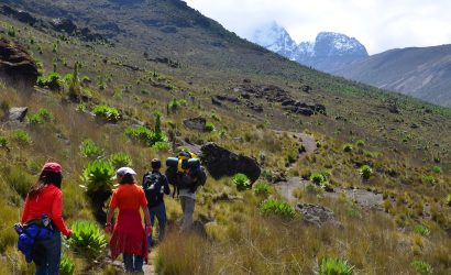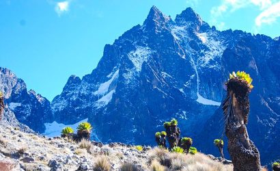 The beautiful, snow capped peak of Mount Kenya is the second highest point in Africa at 5199m.
